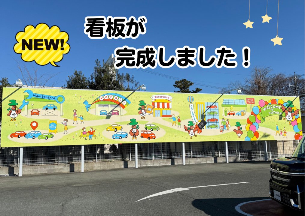 看板のデザインの通り、車の事ならユタカにおまかせください。