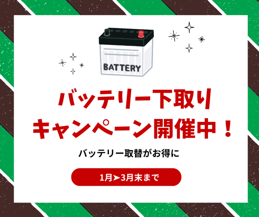 古いバッテリーの下取りで¥1,100の割引になります!!