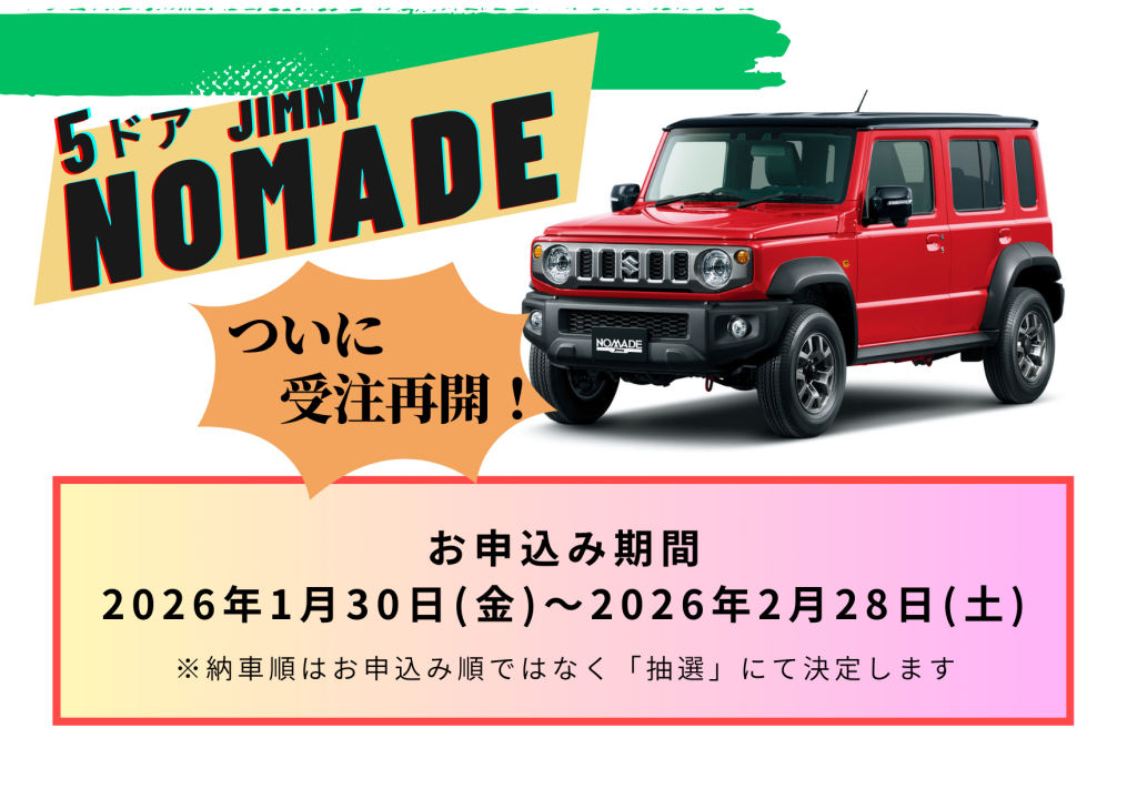 【ジムニーノマド】受注再開★展示車あります!