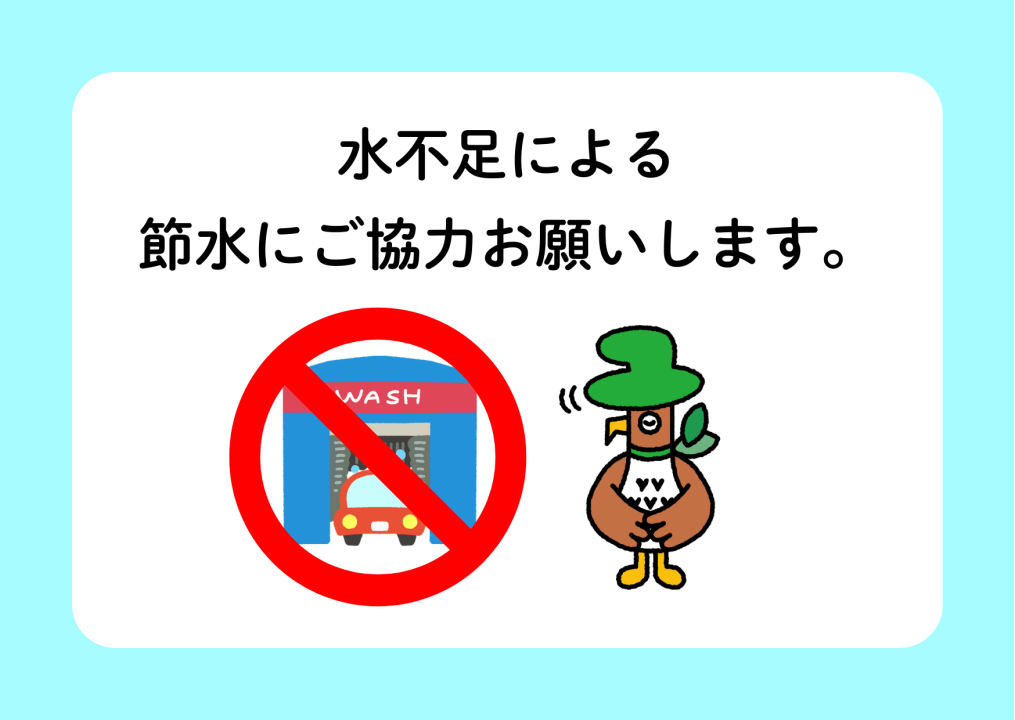 この度弊社では、宇連ダムの深刻な水不足の状況を考慮し洗車のサービスの提供を中止させていただきます。