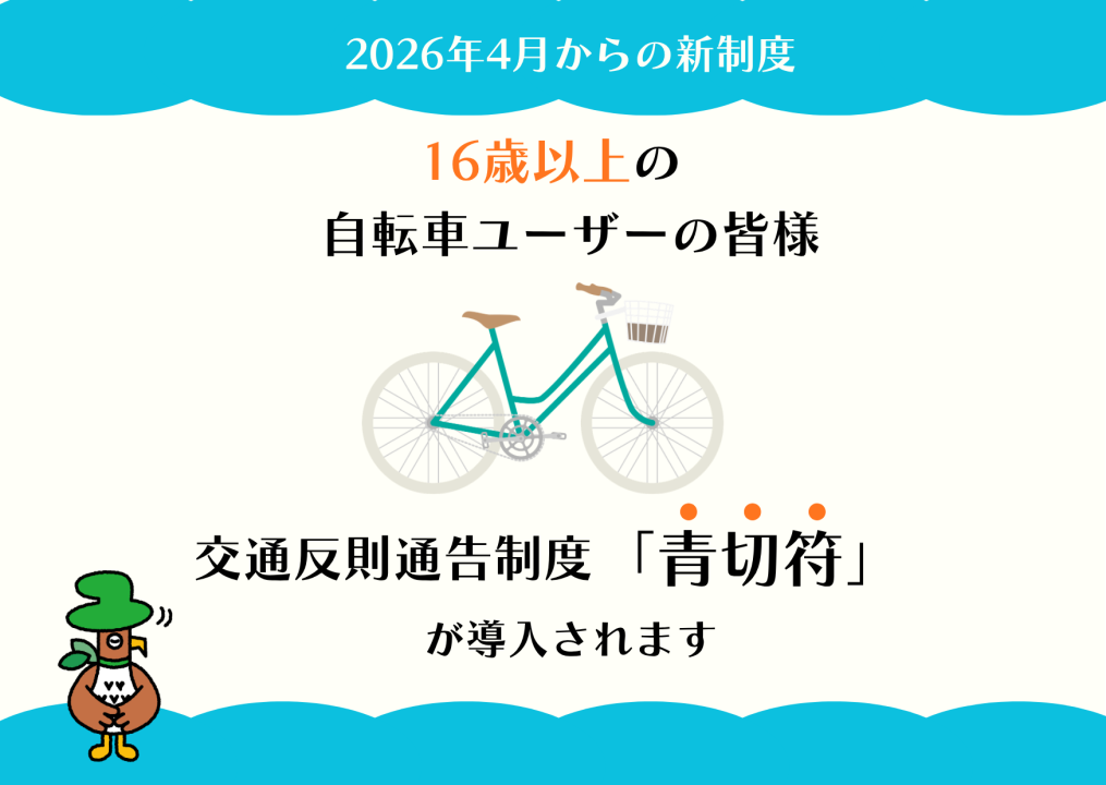 2026年4月1日から自転車にも交通反則通告制度(「いわゆる青切符」)が適用されます。
